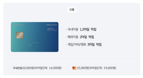 1. KB국민 FINETECH카드(마일리지 대한항공)